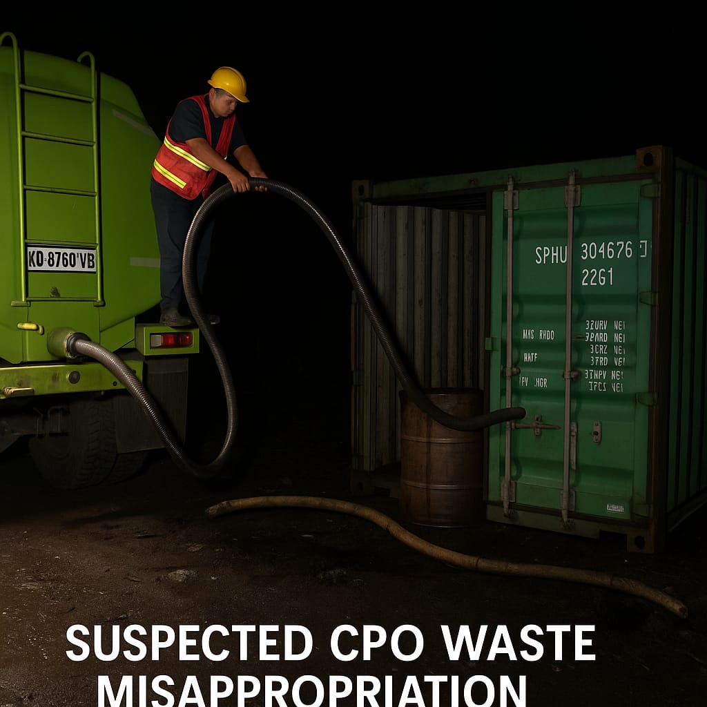Lebih lanjut, tim mendapati adanya aktivitas pemindahan muatan limbah CPO dari truk tangki ke dalam kontainer menggunakan mesin pompa. Puncak aktivitas terjadi sekitar pukul 23.06 WIB, ketika tim mencatat sedikitnya 9 unit truk tangki yang terlibat, dengan tiga kontainer berbeda, salah satunya berkode SPNU 3047672261.