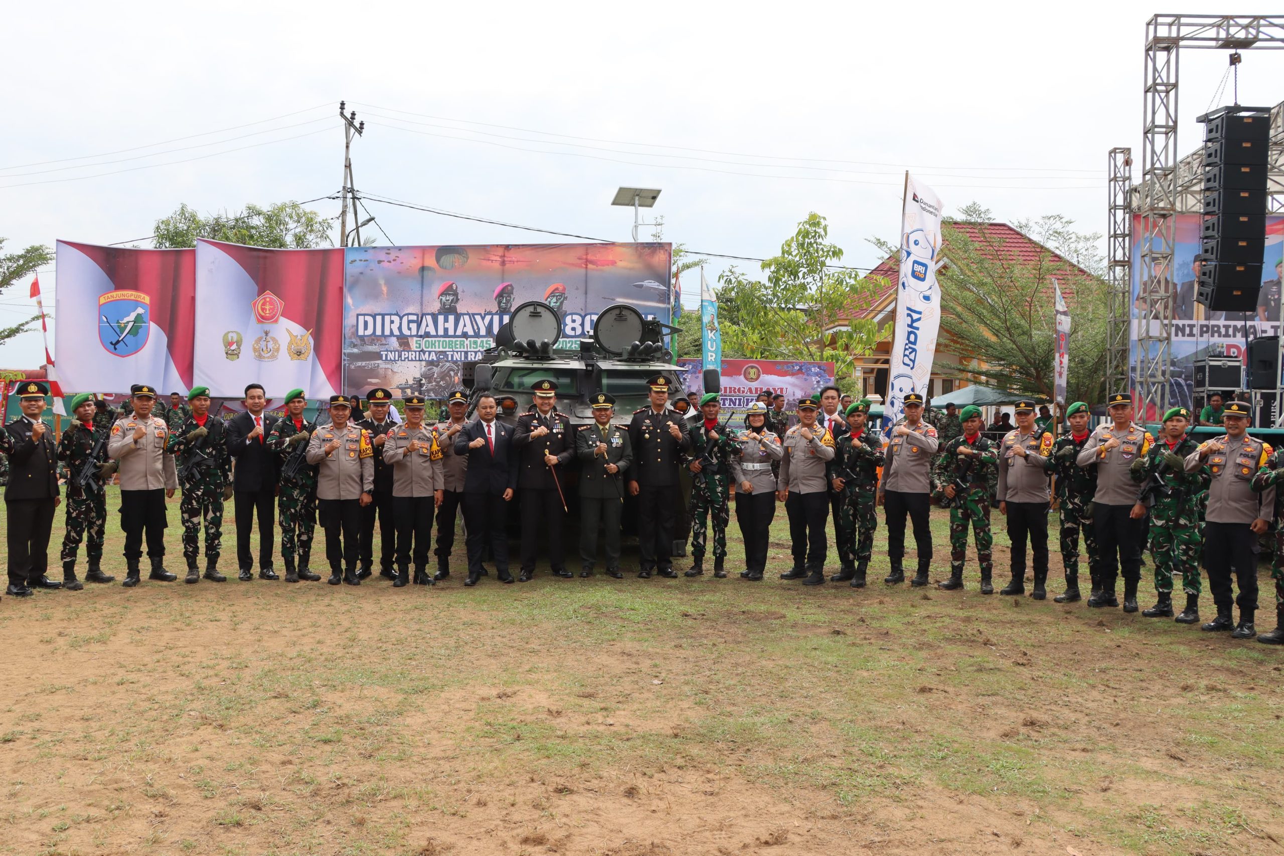 KETAPANG, Polda Kalbar – Kapolres Ketapang AKBP Muhammad Harris S.H., S.I.K., M.I.K., CPHR bersama Pejabat Utama dan Anggota menghadiri kegiatan pelaksanaan upacara peringatan Hari Ulang Tahun (HUT) TNI ke-80 Tahun 2025 yang berlangsung di Makodim 1203/Ketapang, Minggu (5/10/2025).
