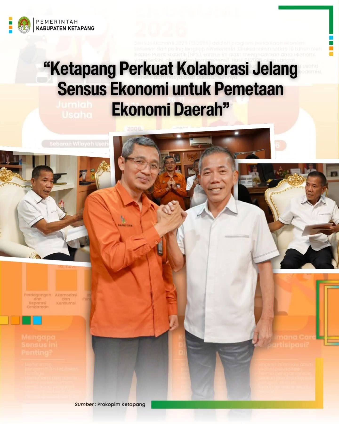 Ketapang, kalbar – Badan Pusat Statistik (BPS) Kabupaten Ketapang melakukan audiensi dengan Wakil Bupati Ketapang, Jamhuri Amir, S.H., guna membahas rencana pelaksanaan Sensus Ekonomi yang dijadwalkan berlangsung dalam waktu dekat.