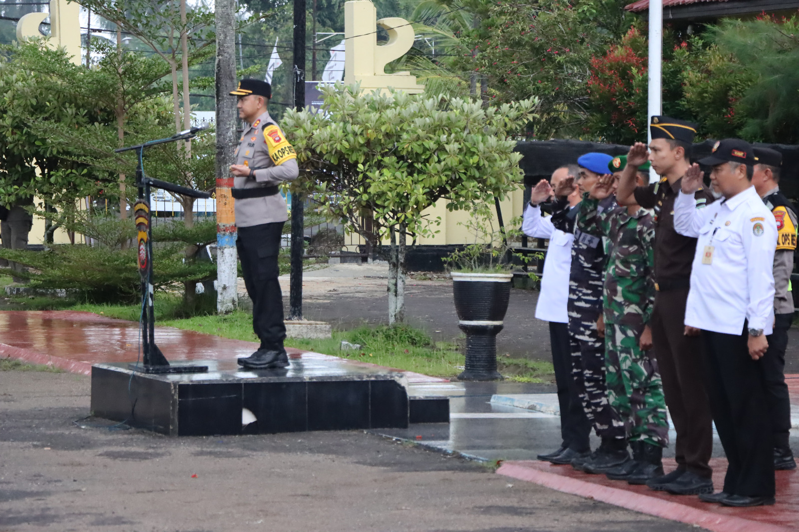 Apel pengamanan tersebut dihadiri oleh unsur Forkopimda dan instansi terkait, di antaranya Bupati Ketapang yang diwakili oleh Sekretaris Daerah Kabupaten Ketapang Refalianto, S.Sos., M.Si, Dandim 1203 Ketapang yang diwakili Kapten Inf Joko W, serta Danlanal Ketapang yang diwakili Danpos AL Lettu Teguh Santoso.