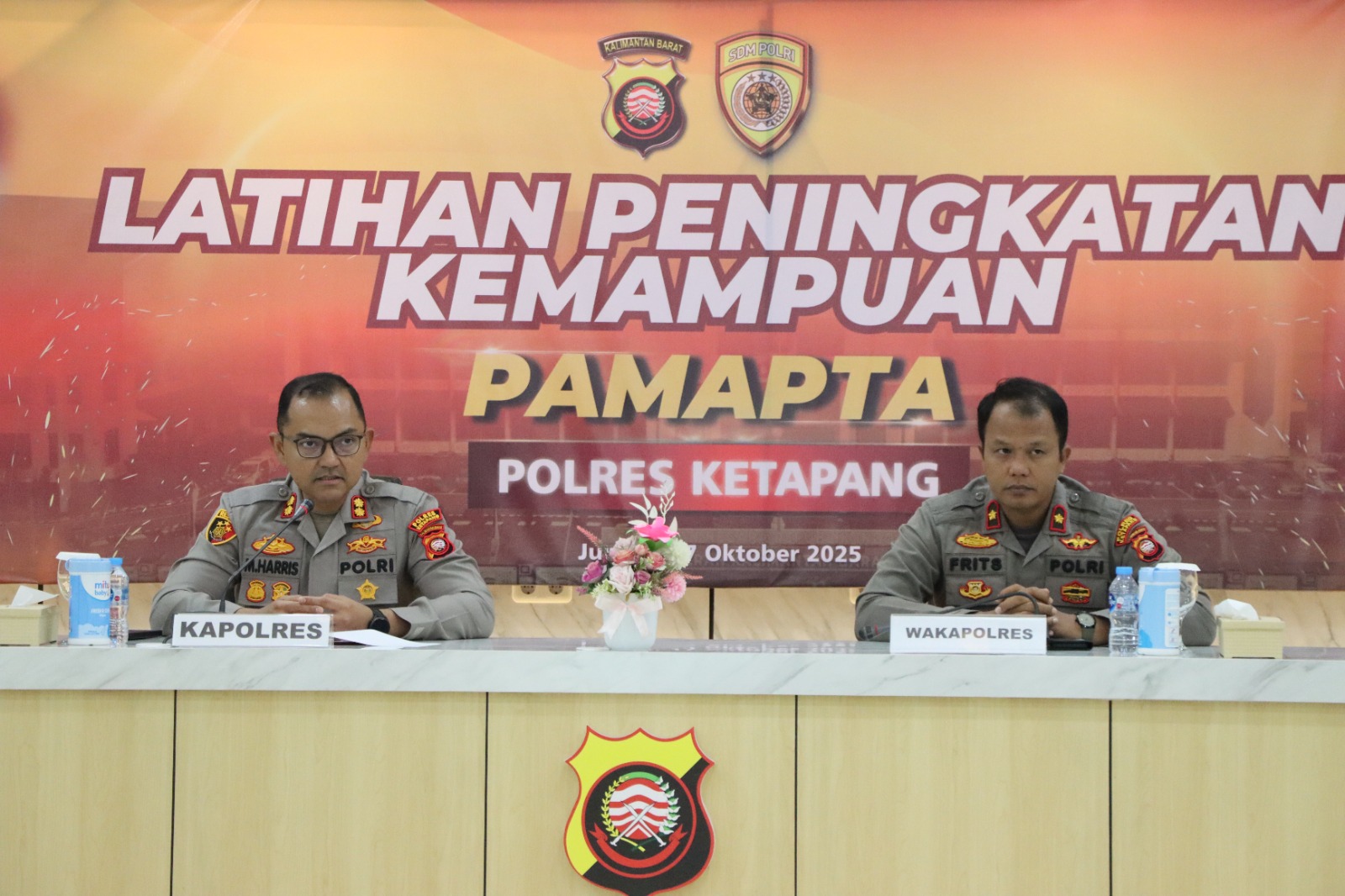Ketapang,Polda Kalbar – Kapolres Ketapang AKBP Muhammad Harris S.H., S.I.K., M.I.K., CPHR memimpin langsung kegiatan Pelatihan Peningkatan Kemampuan Perwira Samapta (Pamapta) Polres Ketapang Polda Kalimantan Barat yang berlangsung di Aula Polres Ketapang, Jum’at (17/10/2025).
