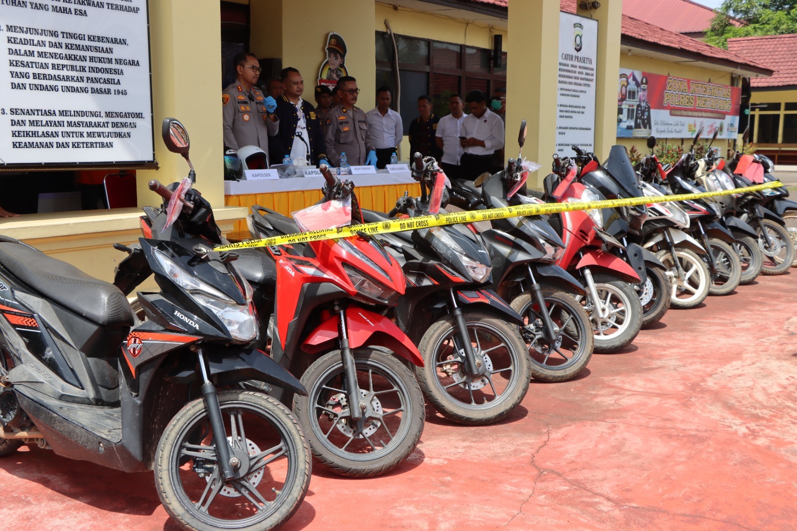 Ketapang, Polda Kalbar – Polres Ketapang Polda Kalbar menggelar konferensi pers pengungkapan kasus pencurian kendaraan bermotor ( curanmor ) yang terjadi di wilayah Kecamatan Delta Pawan Kabupaten Ketapang pada Bulan Oktober 2025 lalu. Konferensi Pers dipimpin langsung Kapolres Ketapang AKBP Muhammad Harris, S.H., S.I.K., M.I.K., CPHR yang didampingi Kasat Reskrim AKP Ryan Eka Cahya, S.I.K., M.Si., Kasi Humas IPTU Niptah, Kapolsek Delta Pawan IPDA Chepry, S.H, serta dihadiri awak media yang bertugas peliputan di wilayah Ketapang, Senin (10/11/2025).