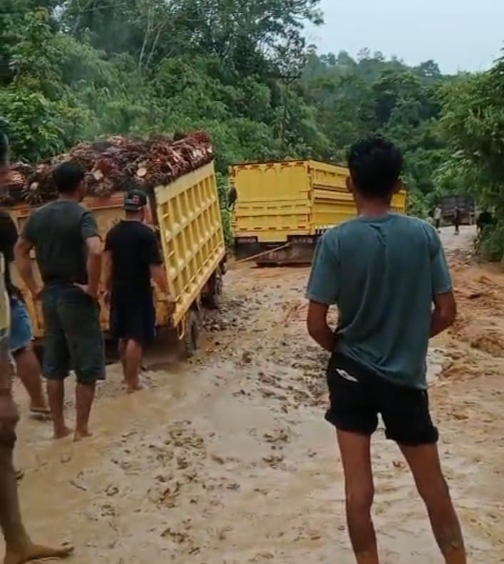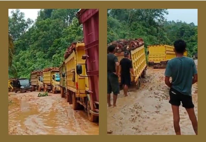 Pada hari ini,10 Januari akibat truk muatan sawit amblas  menyebabkan kemacetan panjang dengan antrean kendaraan membentang jauh.