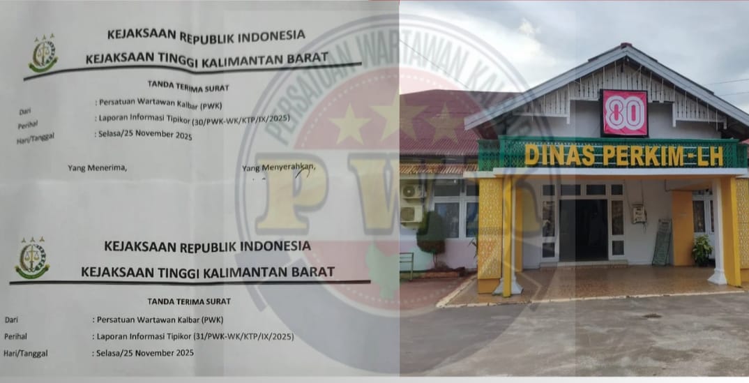 Ketapang, Kalimantan Barat- Persatuan Wartawan Kalbar (PWK) mempertanyakan perkembangan penanganan dua laporan informasi dugaan tindak pidana korupsi (Tipikor) yang diserahkan kepada Kejaksaan Tinggi Kalimantan Barat (Kejati Kalbar), terkait kegiatan Dinas Perumahan, Kawasan Permukiman dan Lingkungan Hidup (Perkim LH) serta Dinas Kesehatan Kabupaten Ketapang.