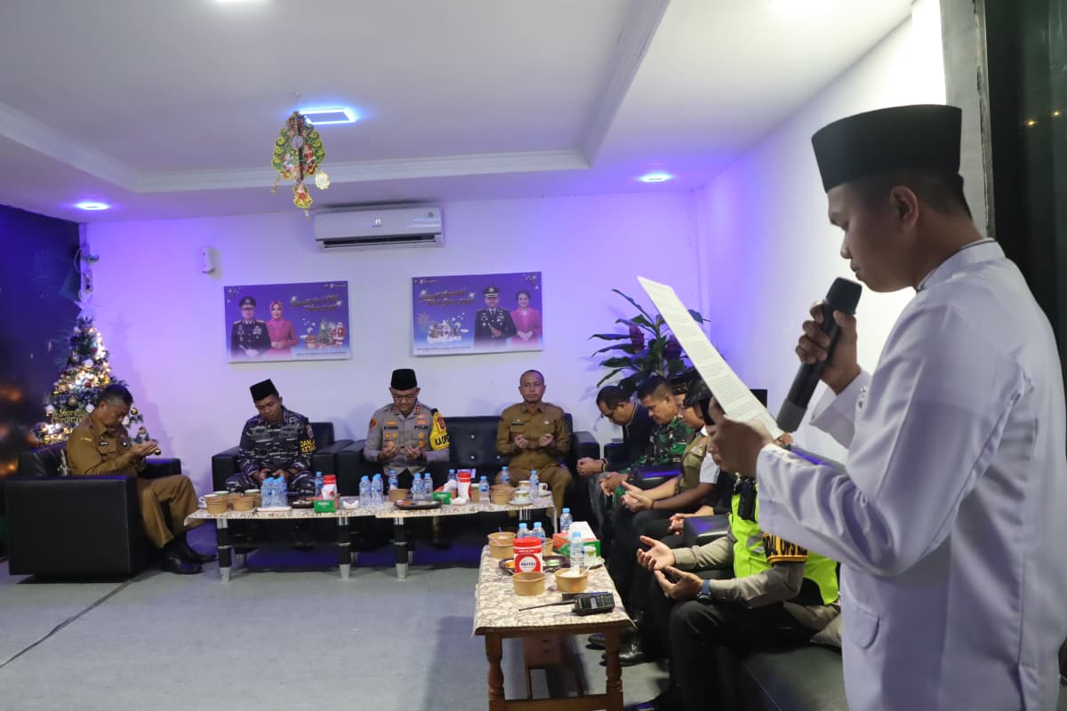 KETAPANG, Polda Kalbar – Dalam rangka menyambut malam pergantian Tahun Baru 2026, Polres Ketapang bersama Forum Koordinasi Pimpinan Daerah (Forkopimda) Kabupaten Ketapang menggelar kegiatan doa bersama sebagai bentuk solidaritas dan kepedulian terhadap para korban bencana alam yang terjadi di wilayah Sumatera dan Aceh.