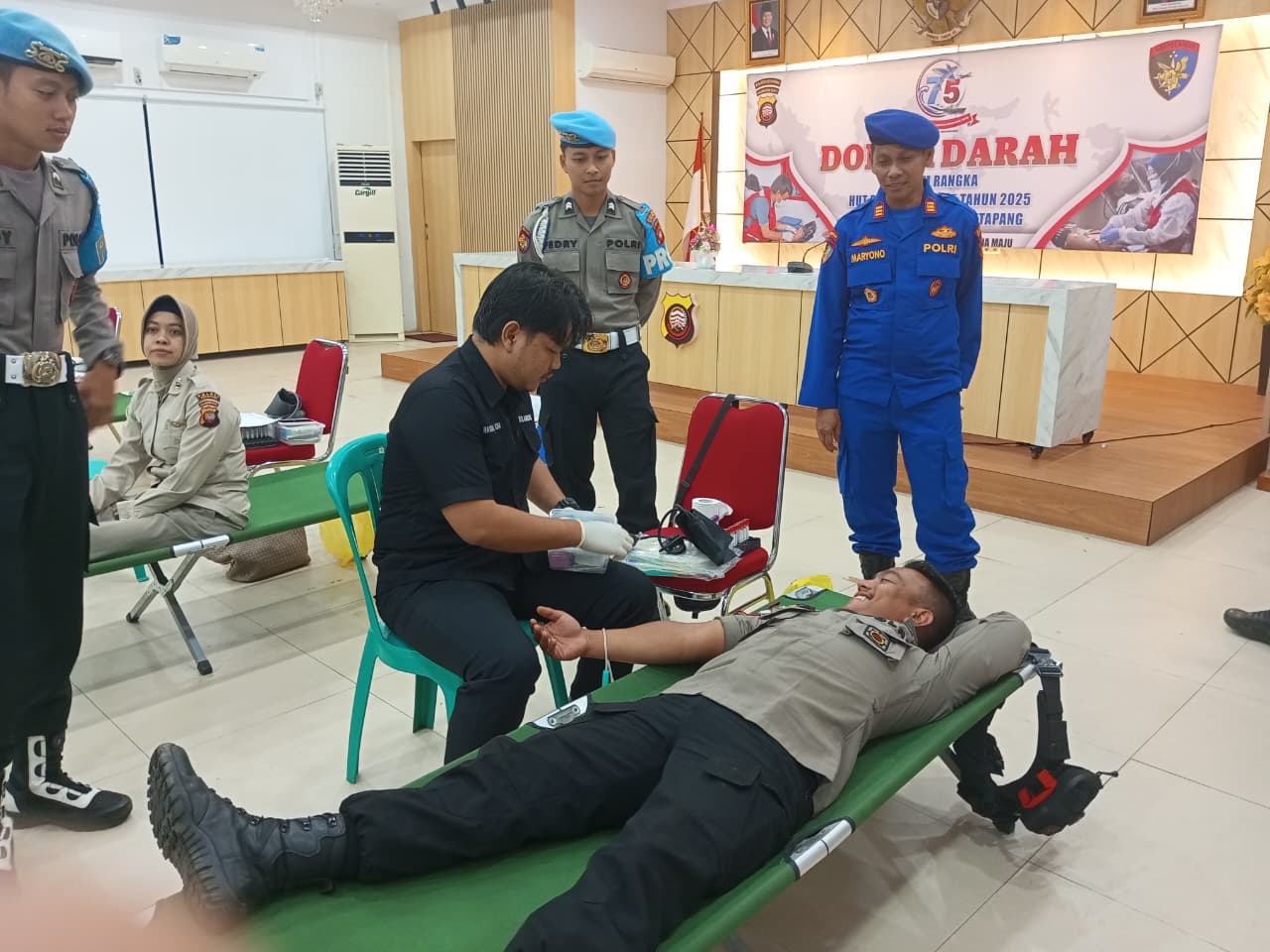 KETAPANG, Polda Kalbar – Dalam rangka menyambut Hari Ulang Tahun (HUT) ke-75 Korps Kepolisian Perairan dan Udara (Polairud) Tahun 2025, Satuan Polisi Perairan dan Udara (Sat Polairud) Polres Ketapang menggelar kegiatan aksi donor darah, bertempat di Aula Mapolres Ketapang, pada Rabu (12/11/2025).