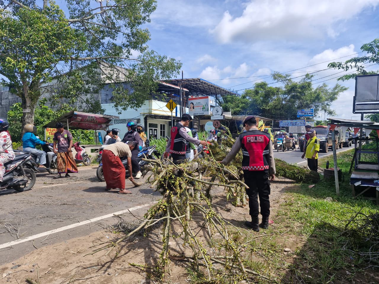 Dalam pelaksanaannya, personel Sat Samapta melakukan sejumlah kegiatan, antara lain pengaturan arus lalu lintas untuk mencegah kemacetan dan potensi kecelakaan (laka lantas), serta membantu petugas Dinas Perkim LH Kabupaten Ketapang dalam menumbangkan dan membersihkan pohon serta ranting yang tumbang akibat angin kencang.