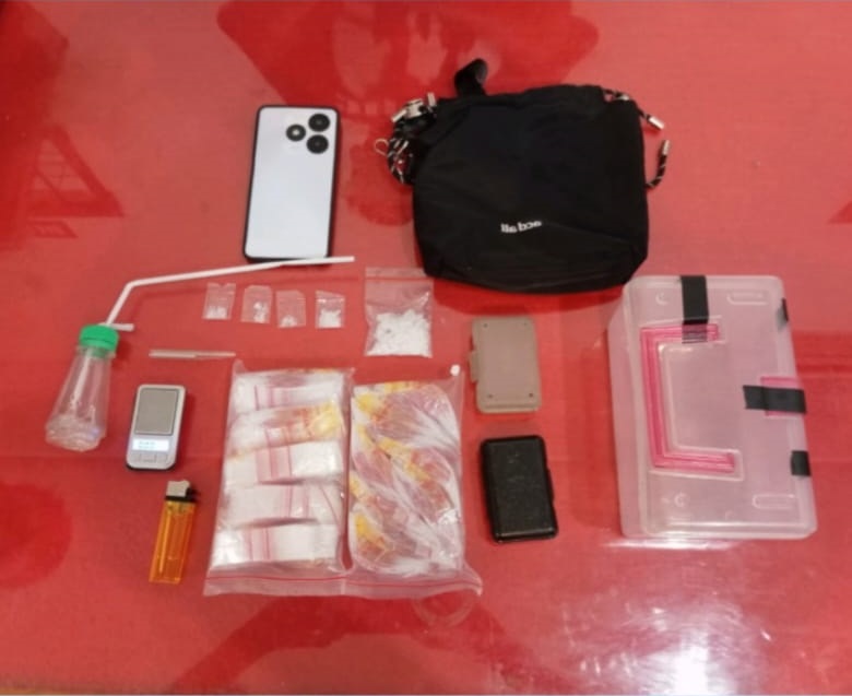 Pelaku diamankan di area rumahnya di Desa Bengaras Kecamatan Sungai Laur Kabupaten Ketapang. Saat petugas mengamankan pelaku yang disaksikan perangkat warga setempat, petugas mendapati dari tangan pelaku sejumlah barang bukti berupa 5 kantong klip plastik bening berisi kristal putih yang diduga narkotika jenis sabu dengan berat total 11,35 gram brutto, 1 alat hisap sabu berupa bong, 1 timbangan elektrik, 1 buah pipet, 1 buah korek api, 1 buah handphone serta uang tunai sejumlah 11.824.000 Rupiah.