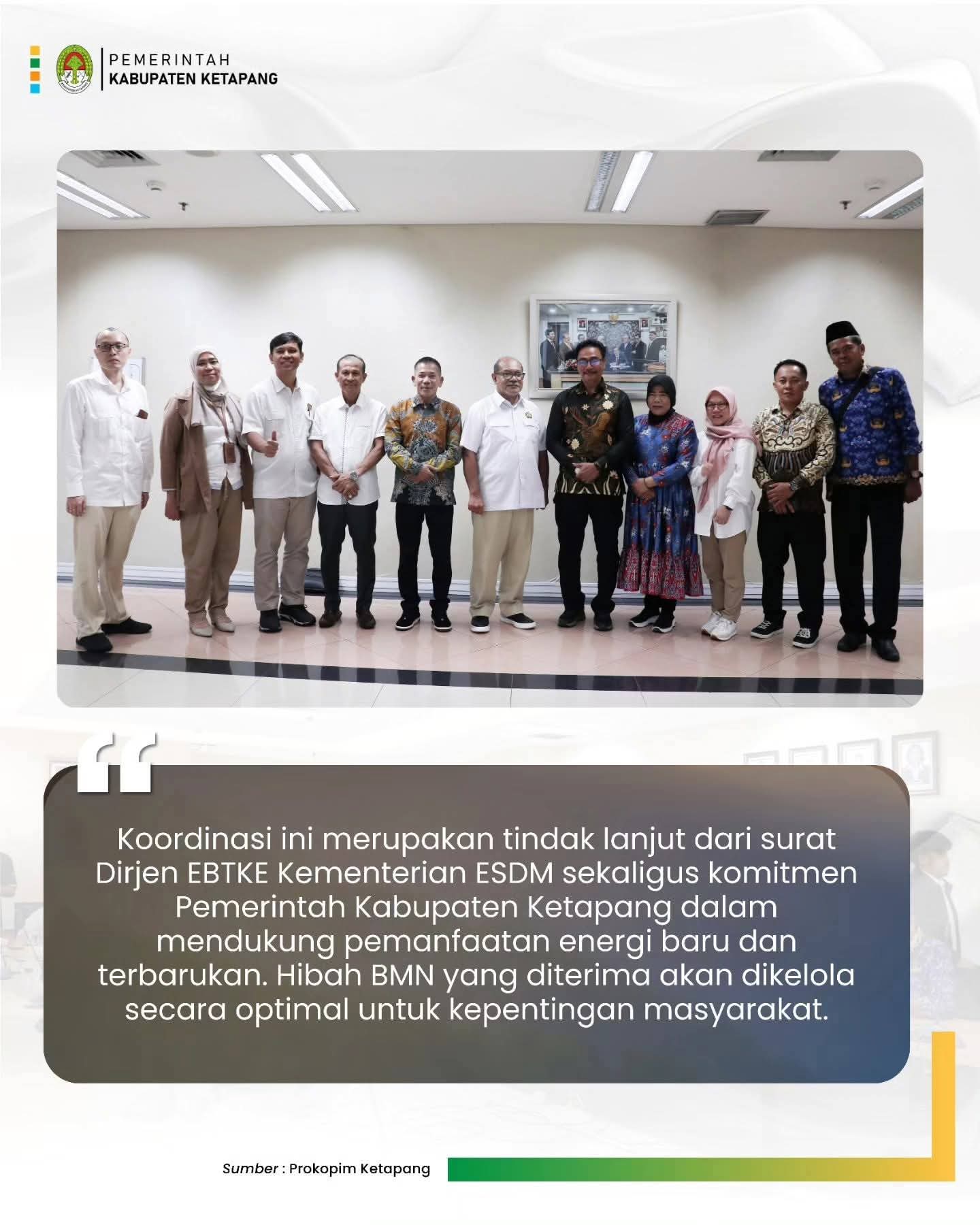 Koordinasi ini merupakan tindaklanjut dari surat Direktorat Jenderal Energi Baru, Terbarukan dan Konservasi Energi (EBTKE) Kementerian Energi dan Sumber Daya Mineral Republik Indonesia tertanggal 29 Oktober 2025 perihal serah terima Barang Milik Negara (BMN) pembangunan infrastruktur Energi Baru, Terbarukan dan Konservasi Energi (EBTKE) tahun 2019 hingga Tahun Anggaran 2024.